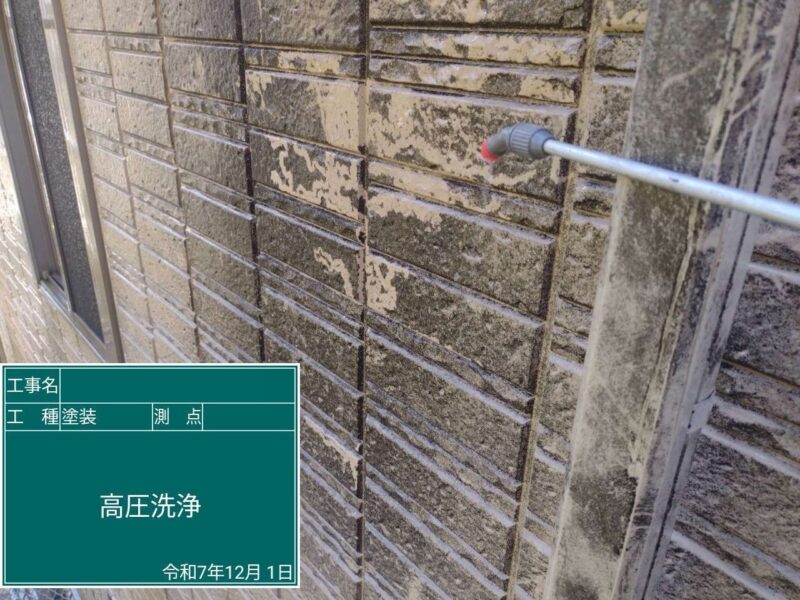 【高圧洗浄】しっかりと古い塗膜や汚れを落としていきます。
