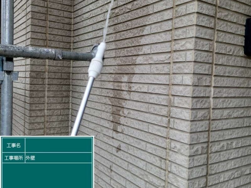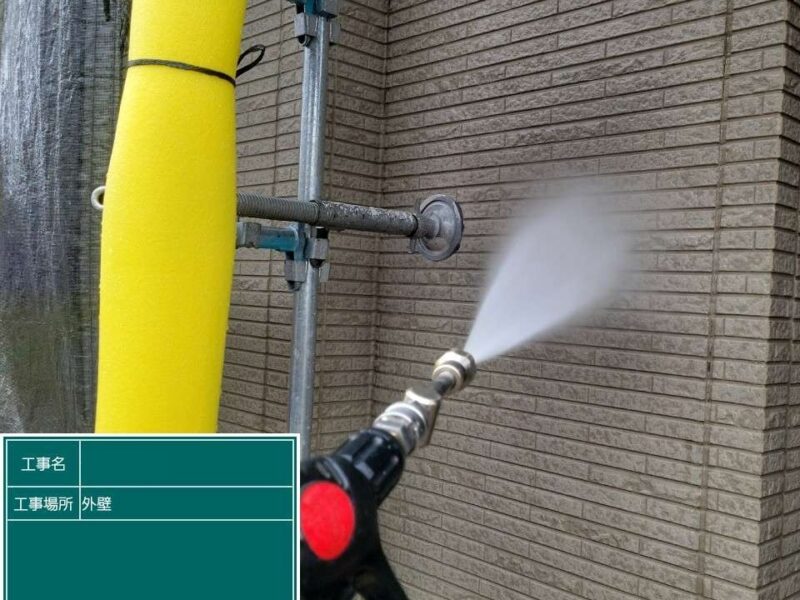 【高圧洗浄】しっかりと古い塗膜や汚れを落としていきます。