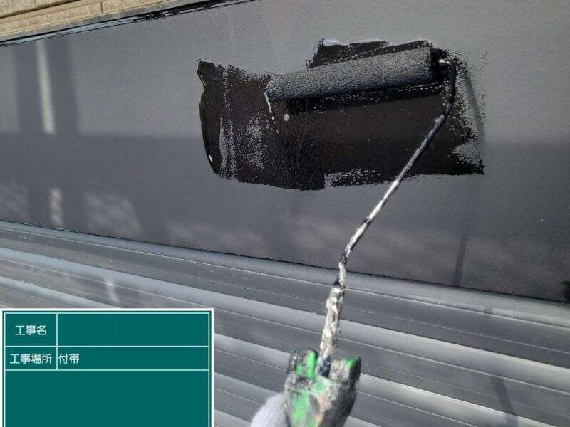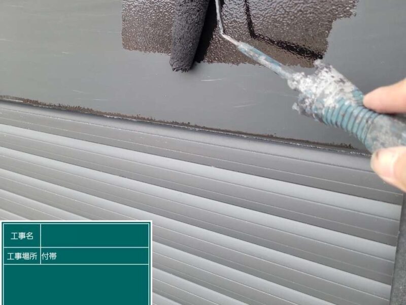 【シャッターボックス】下塗りです。鉄部分の下塗りは錆止め塗装をします。
