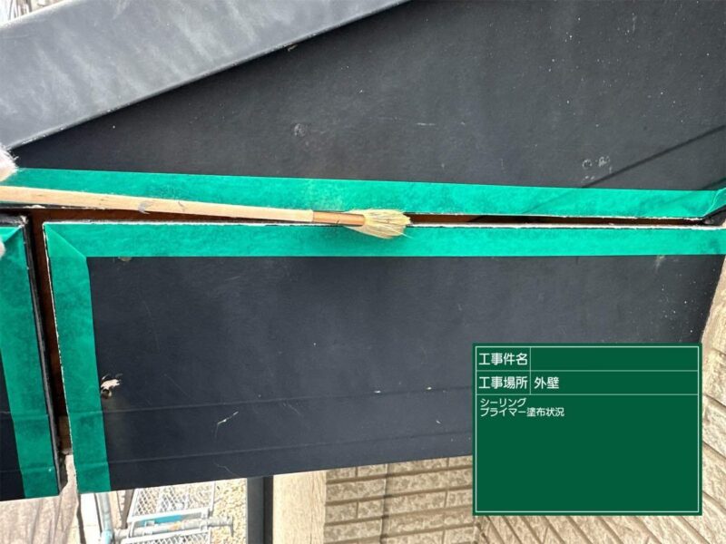 【破風】プライマーを塗布しシーリング材の密着をよくします。